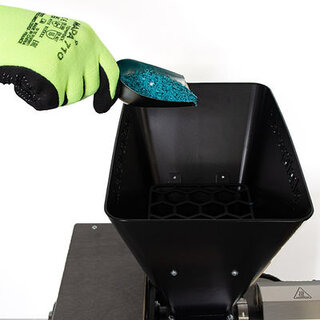 | Aanbevolen vlokken/grootte | Wij raden het gebruik van vlokken met een grootte van < 5 mm of industriële granulaten aan. De grootte van de vlokken bepaalt de verwarmingscyclus en is daarom cruciaal voor de smelttijd en het uitvoervolume. |