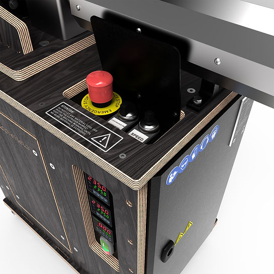 Industriële isolatie om het energieverbruik te verminderen en het plastificeerproces te optimaliseren, evenals een elektronicakast met eersteklas componenten en vereiste veiligheidscycli.